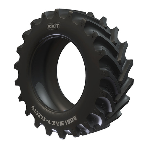 The BKT Agrimax V-Flecto is an agricultural radial tire with VF (Very High Flexion) technology, designed for high-power tractors. Ideal for soil tillage and haulage applications, the Agrimax V-Flecto minimizes soil compaction and maximizes crop quality. Its innovative design provides superior flotation and self-cleaning properties, reducing maintenance time. The VF technology allows it to carry heavy loads at lower inflation pressures compared to standard tires, improving fuel efficiency and overall performance.