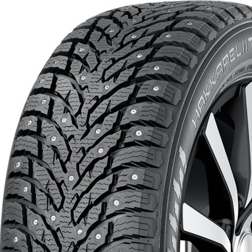 The Nokian Hakkapeliitta 9 tire with studs is the newest Nokian winter tire with excellent traction for the broad range of snow, ice and bare road conditions. This is a good tire choice for anyone that lives in a climate with unpredictable winter weather. In addition to the studs, the Nokian Hakkapeliitta 9 with studs has tread features like open grooves for snow traction, plenty of sipes for biting edges on ice, and a pliable tread rubber that stays soft on extremely cold dry roads. Even without studs, the latest generation Nokian Hakkapeliitta 9 will impress you with remarkable handling on wet and dry roads, and a sport performance tire feel on dry cold winter roads. When you add in the factory installed studs, this is a very safe tire in all conditions, and a great winter tire option for a large range of cars and CUVs. The Hakkapeliitta 9 series, with or without studs, leads in many Consumer Reports winter tire performance tests, and is absolutely the latest and greatest winter tire from the leader in premium winter tires.