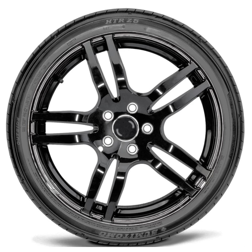 Sumitomo HTR Z5 is an ultra-high-performance summer tire designed for sports cars, coupes, and performance sedans. HTR Z5 helps the driver get the best out of modern sports car and maximizes the daily driving experience, especially in wet-weather conditions. The tire’s continuous center rib adds stability and improves steering response, while the substantial shoulders improve lateral grip. Sumimoto’s notches in the intermediate and center ribs combine with the tread compound for traction in wet conditions, while four wide circumferential grooves help to evacuate water from the tread area for advanced hydroplaning resistance. HTR Z5’s increased shoulder and contact patch ensures even distribution of pressure to prevent irregular wear and improve handling performance. The internal construction consists of full-width nylon band that optimizes high-speed stability, and high-rigidity steel belts that offer greater durability and car stability. Hard apex strengthens sidewall for exceptional cornering stiffness.